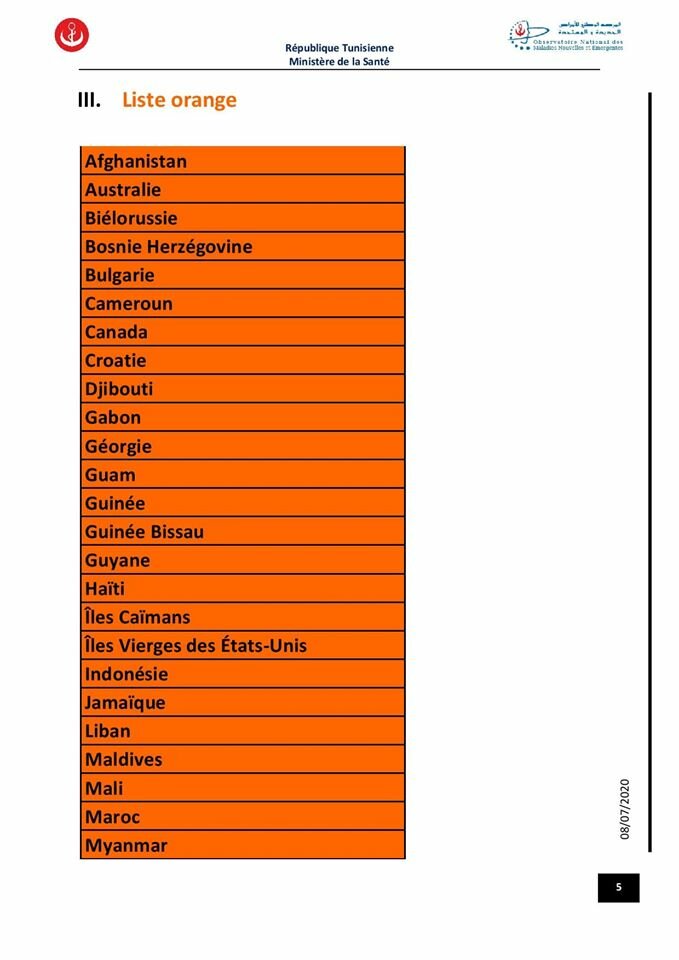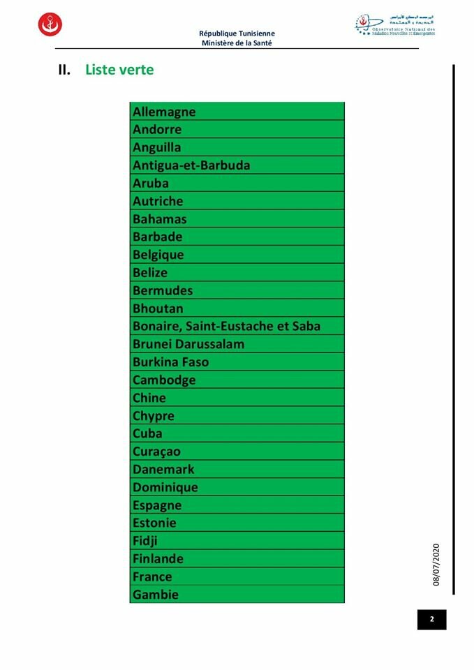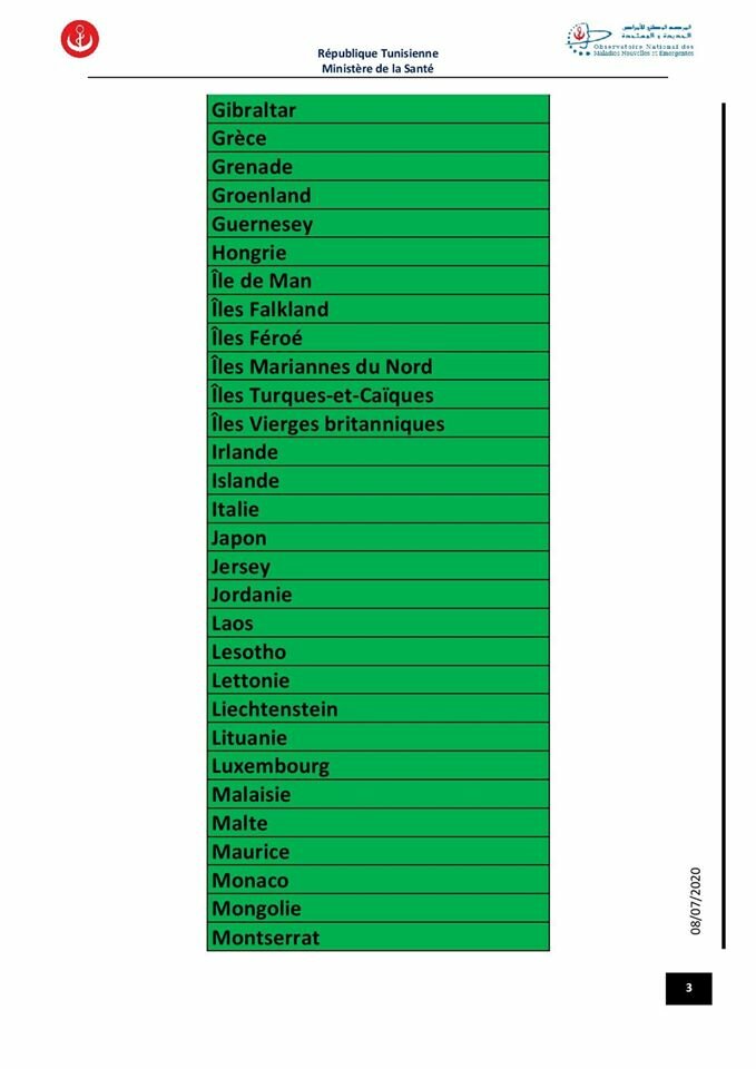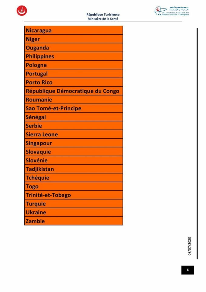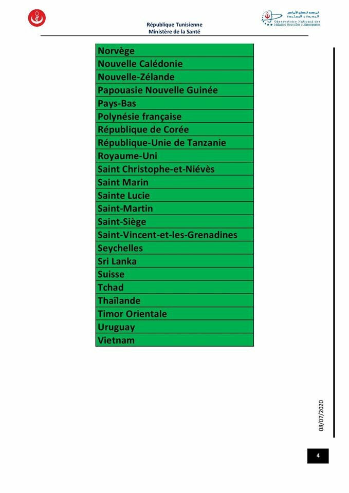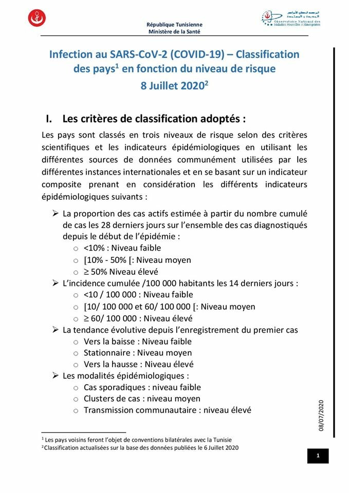 ⏺ تحديد الوضعية الوبائية من قبل المرصد الوطني للأمراض الجديدة والمستجدة لمختلف الدول التي أنهت فترة الحجر الصحي الشامل وأعلنت عن فتح حدودها وذلك بالاستناد الى المعايير العلمية والوبائية المتوفرة والمعتمدة دوليا ويتولى نشرها على الموقع الالكتروني الرسمي لوزارة الصحة santetunisie.rns.tn ويقوم بتحيين تصنيف الوضعية الوبائية كل أسبوع وكل ما اقتضى الأمر ذلك.